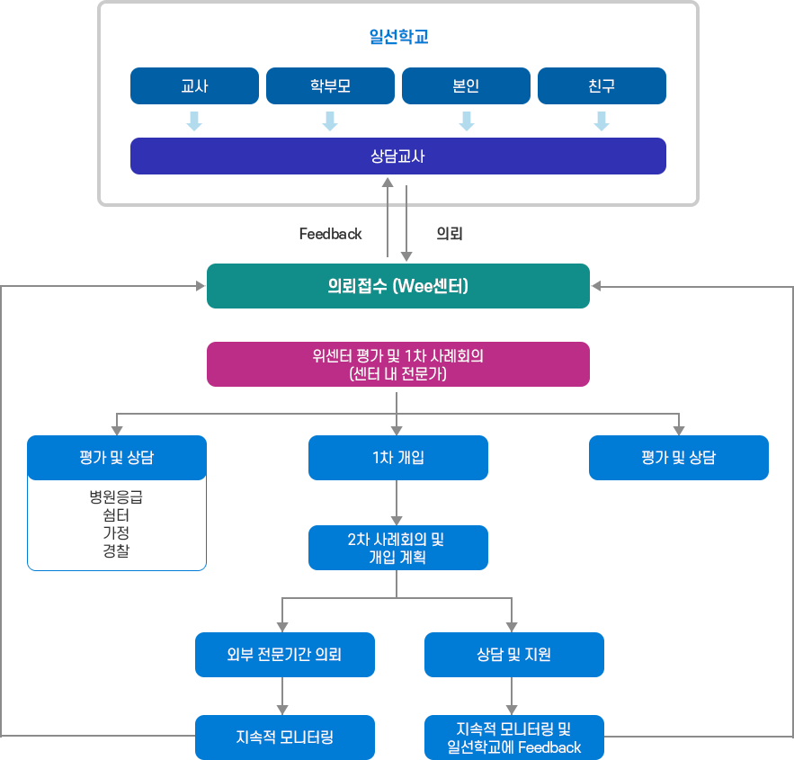 • 요청학교로 순회상담 또는 Wee센터 내방상담